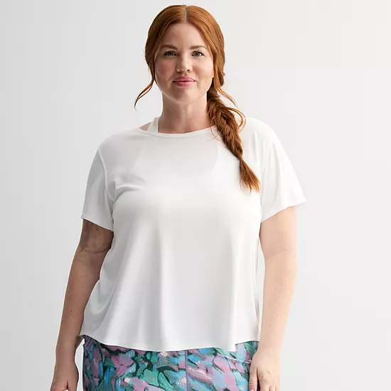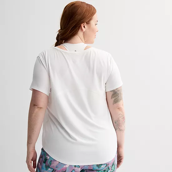This women’s plus size Tek Gear® mesh t-shirt is the perfect addition to any closet.