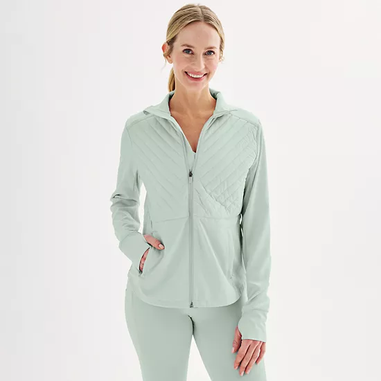 Feel confident as you glide through the day wearing this Women’s Tek Gear® woven mixed media jacket.